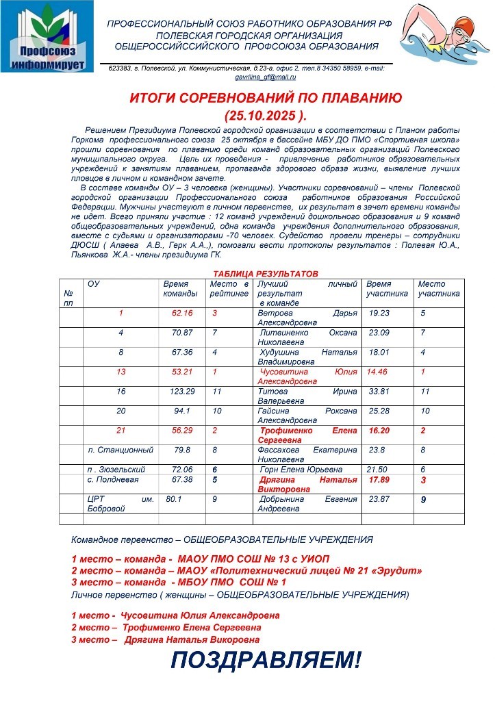 ПОЛЕВСКАЯ ГОРОДСКАЯ ОРГАНИЗАЦИЯ ПРОФСОЮЗА